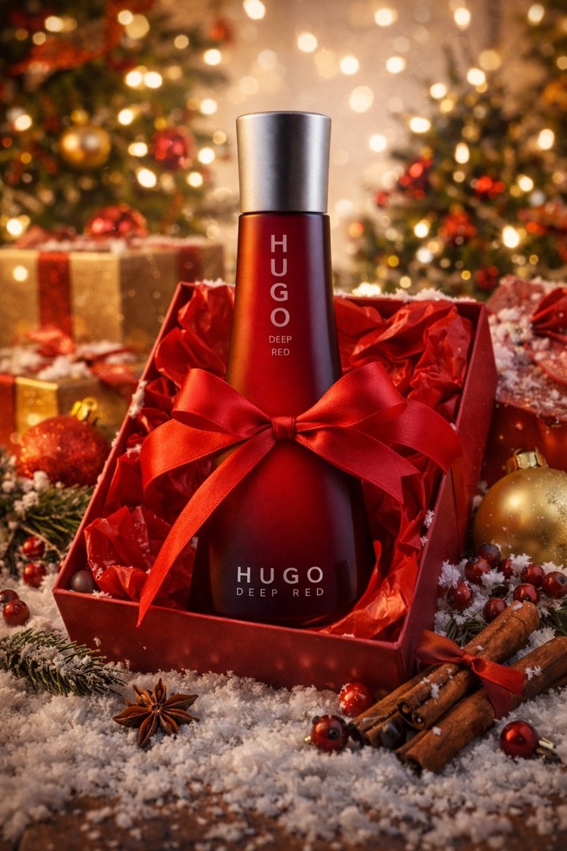 The perfumes suitable for Christmas are those with warm, woody, spicy or sweet-fruity notes. For women, choose floral tones with vanilla or currant, while for men, opt for woody and aromatic fragrances. Hugo Boss Deep Red and Hugo Boss Dark Blue perfumes are perfect examples for creating an elegant and sophisticated gift for the holidays.